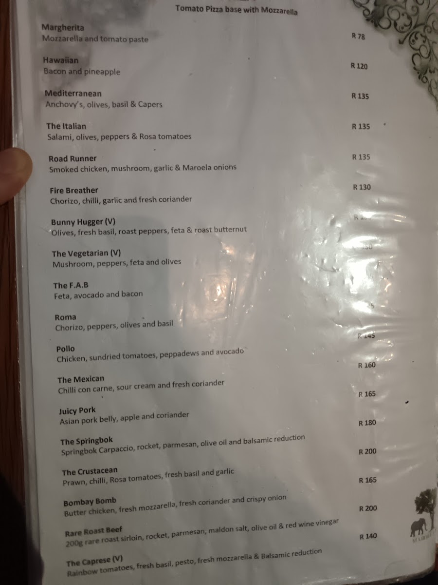 The highlight of Maroela Bar's menu is its exquisite wood-fired pizzas, celebrated for their authentic flavors and smoky aroma. Guests rave about the perfectly cooked T-bone steak and the affordability of dishes, with kids' meals starting as low as R40. This dedication to quality without breaking the bank is a clear favorite among visitors.